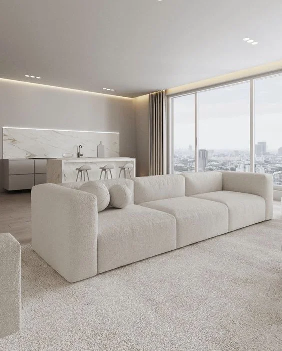 - اگر از یک رنگ خنثی مانند سفید برای دیوارها و کف استفاده کنید، به راحتی میتوانید مبلمان و فرش مورد علاقه خود را انتخاب کنید و محدودیتی از لحاظ رنگ مبلمان و اثاثیه نخواهید داشت.